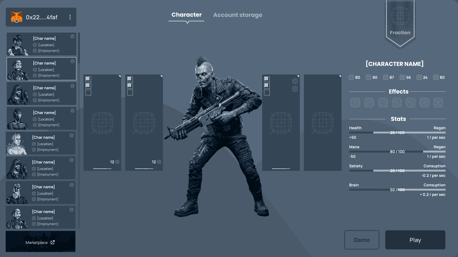 — Core Gameplay First — UX усиливает боевой цикл и навигацию как фундамент игры; — Прозрачность систем — игрок понимает, что получает и почему; — Атомарный UX — все части игры проектируются как как компоенты, совместимые с UI фреймворком; — Плавная интеграция Web3 — цифровые активы не мешают, а дополняют игровой опыт; — Иммерсивность — UI и UX поддерживают атмосферу survival-сеттинга;